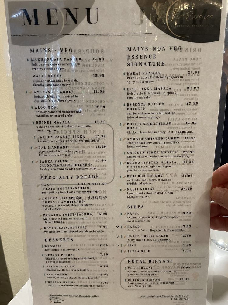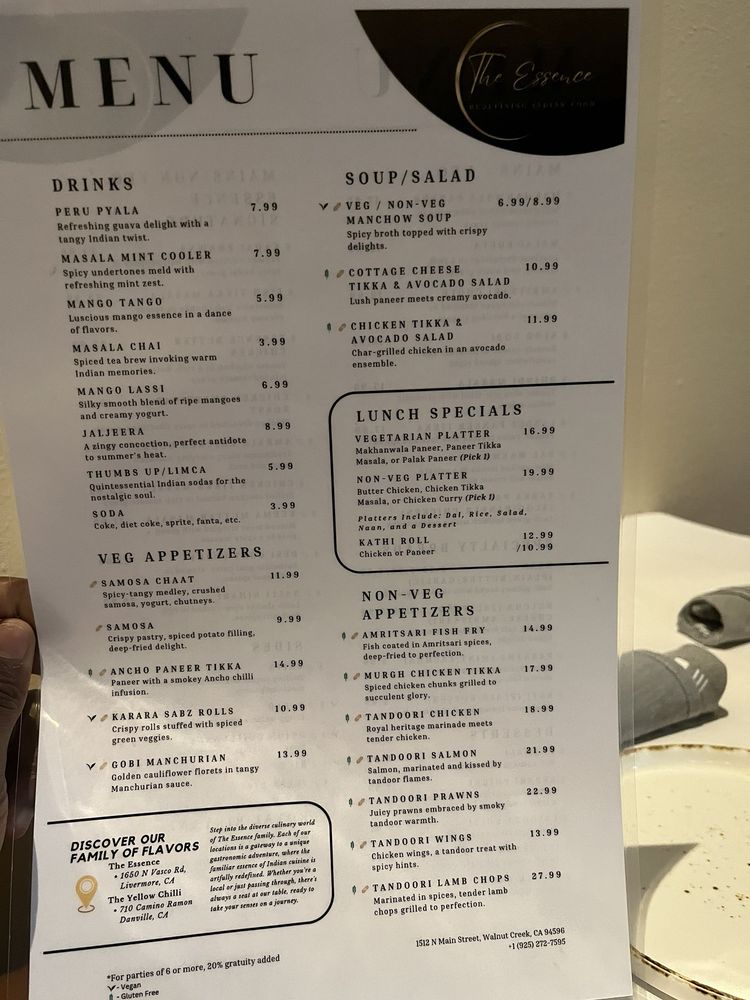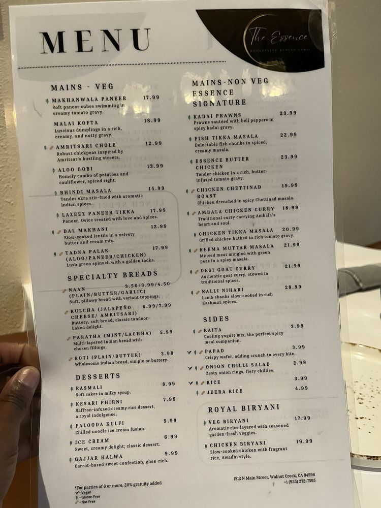 The Essence Redefining Indian Food is a culinary gem located in Walnut Creek, CA, offering a unique dining experience that truly redefines traditional Indian cuisine. This establishment prioritizes customer convenience by offering various utilities such as reservations, delivery, takeout, catering, and even private dining options. The menu features a diverse selection of authentic Indian dishes crafted with a modern twist, showcasing the essence of Indian flavors in every bite. From savory curries to flavorful biryanis, each dish is expertly prepared to perfection. The restaurant also caters to different dietary preferences, ensuring everyone can indulge in the rich flavors of Indian cuisine. The Essence Redefining Indian Food is a must-visit for anyone looking to explore the vibrant world of Indian flavors in a modern setting.